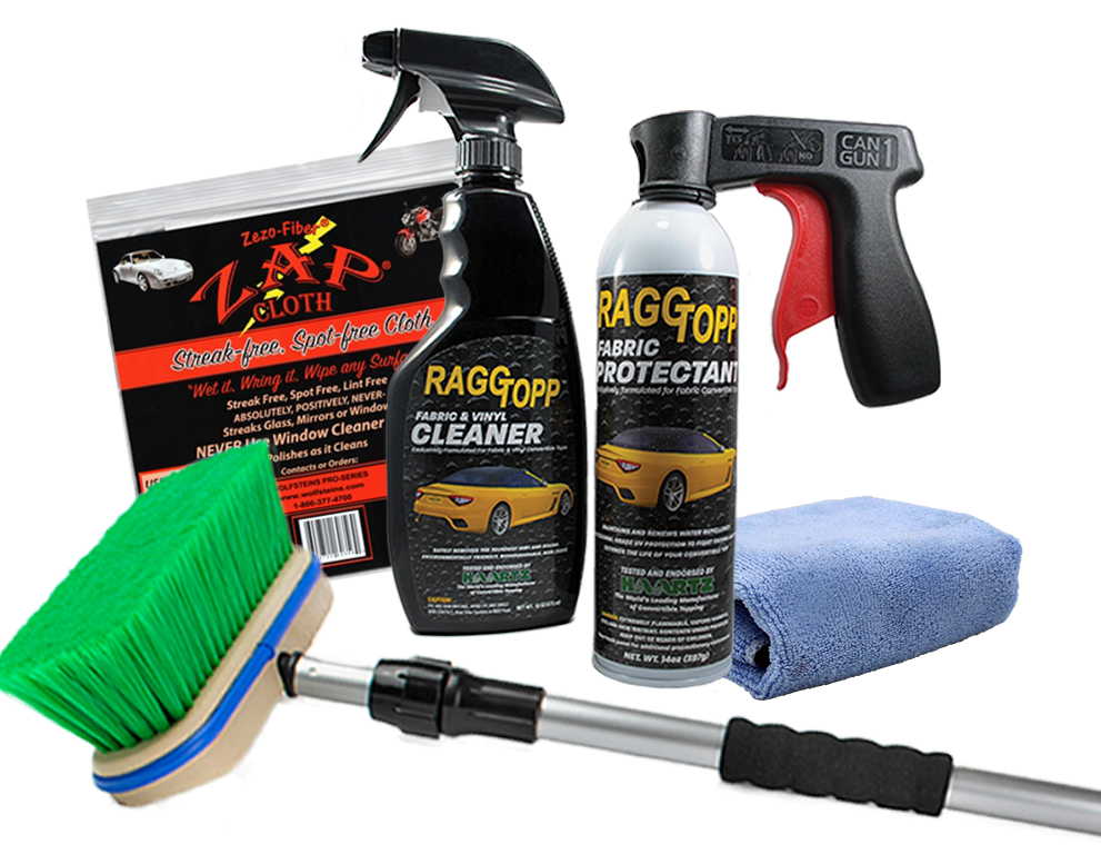 We've partnered with Wolfsteins, maker of RAGGTOPP convertible care products, to develop a customized premium care kit. The package includes the brand new extendable cleaning brush. The telescoping handle and hose attachment make cleaning your soft top an absolute breeze. The kit also offers RAGGTOPP's signature, professional-grade cleaner and protectant as well as a variety of high-performing accessories. Visit Wolfsteins.com to order.